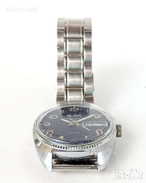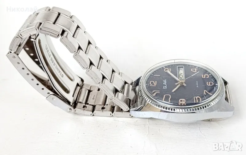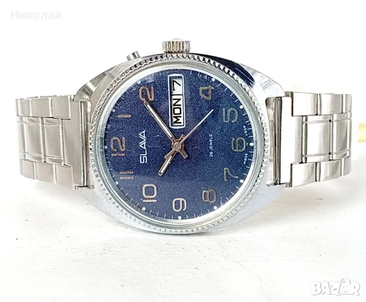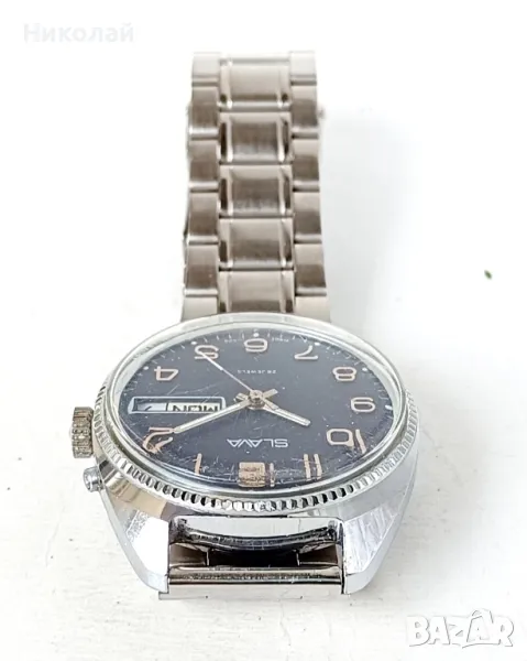 Slava Слава cal. 2428 26j - мъжки механичен часовник с ръчно навиване, профилактиран, работещ коректно, с нова метална верижка.