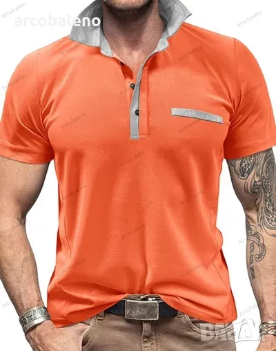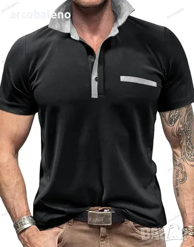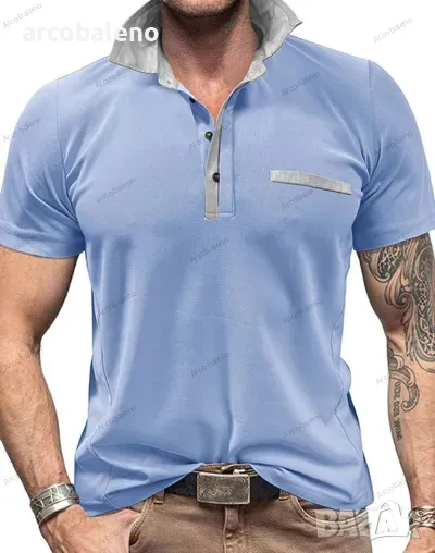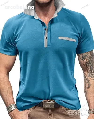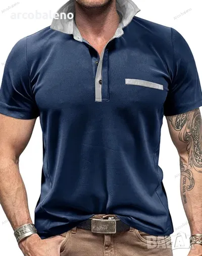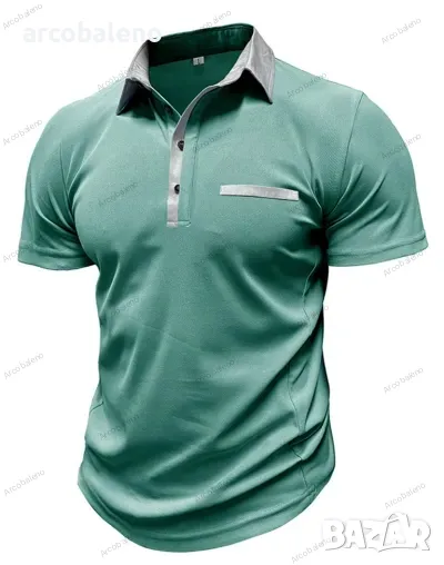 Ежедневна мъжка поло риза с къс ръкав с цветни блокчета и ревери, 6цвята