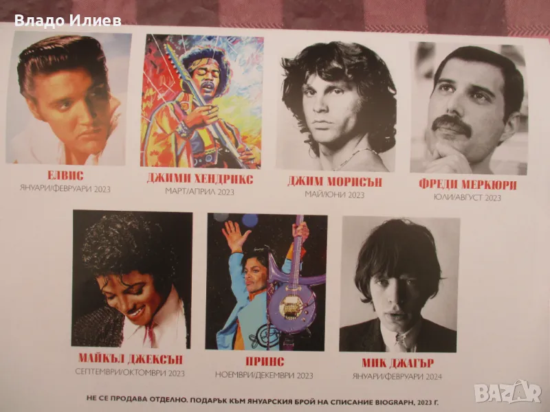 КалендарВ света на музикалните легендиЕлвис,Дж.Хендрикс,Дж. Морисън,Ф. Меркюри,М.Джексън,М. Джагър → Обява 49318976