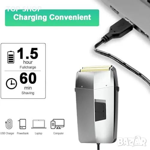 Нов Плаващ Бръснач с Двойна Глава и USB-C, Идеален за Пътуване мъже бръснене → Обява 49319157