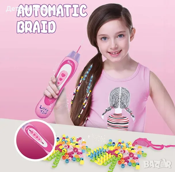 Специалният инструмент ви позволява да използвате мъниста и многоцветни цветове за всички типове коса. Направете своя собствена украса за коса с тази невероятна машина.