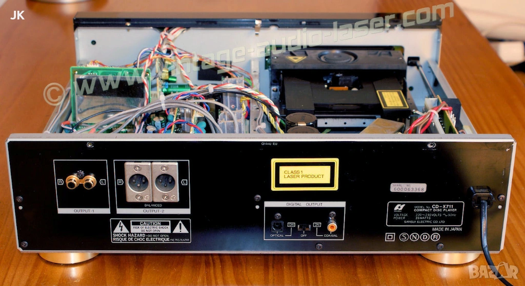 SANSUI CD-X711 най-големият модел за 1989-1992 г. Много рядък и сериозно изграден масивен компакт диск плеър с голям и красив дисплей. Два трансформатора съответно за цифровата и аналоговата част. Схемотехника пълен баланс, започваща от ЦАП-па. Оптика KSS-152A - Magnetic, чете мигновенно всякакви дискове включително CD-R и няма проблем да се намери след много време ако се наложи:). Изходи XLR , RCA, Optical и Coaxial. Налично дистанционно. Леки драскотони по горният капак.