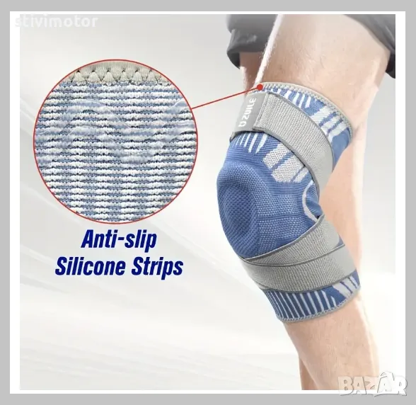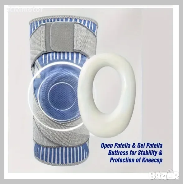 Омекотен, анатомичен ринг и допълнителни опорни ленти, стабилизира капачката на коляното и я предпазва от разместване. Дишащата материя спомага за регулиране на температурата в областта и стимулира мускулния тонус.