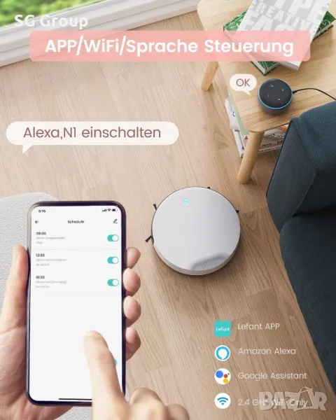 Прахосмукачката-робот LEFANT N1 разполага с впечатляващо силно засмукване от 4500 Pa, дълъг живот на батерията и интелигентно управление на приложението за чист дом без усилия има вграден wifi модул за връзка с Интернет.прахосмукачка е съвместима с alexa и google контрол на приложението ,самозареждаща се и изключително тиха.