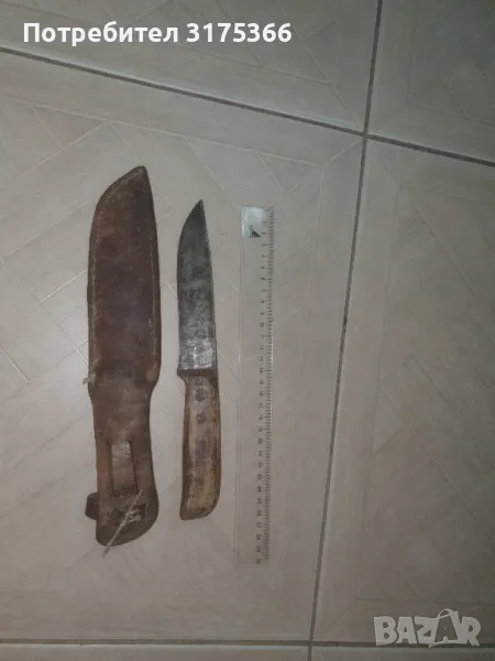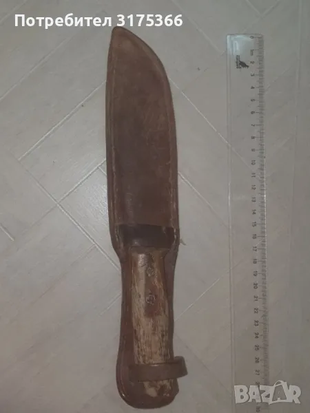 Стар ловджийски нож с кожена кания с отличен ряз → Обява 49321149