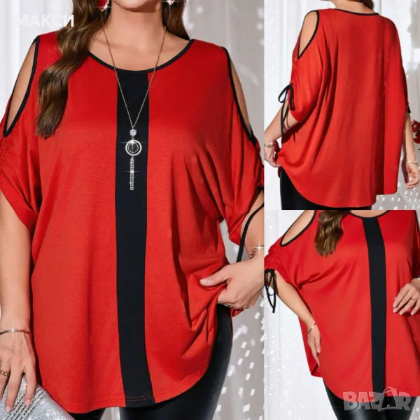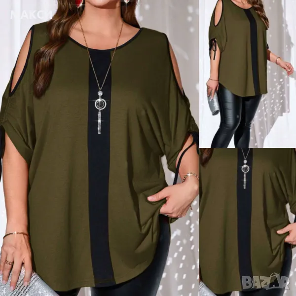 Макси модерна силно еластична стилна туника с отворени рамене, извивки и коригиращи ръкава вързалки