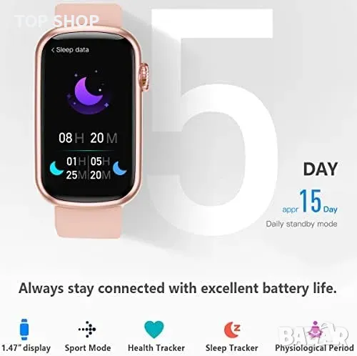Съвместимост с Android и iOS смартфони, до 7-10 дни работа с едно зареждане