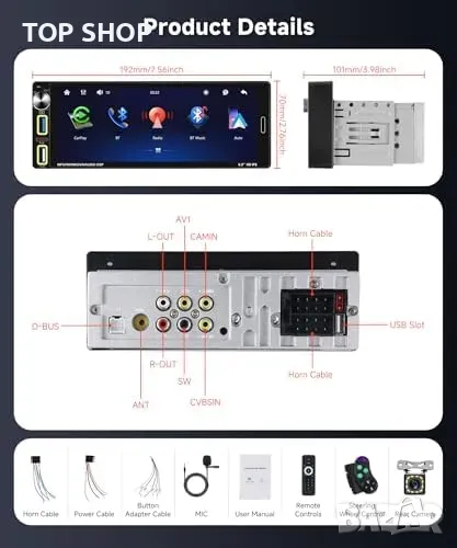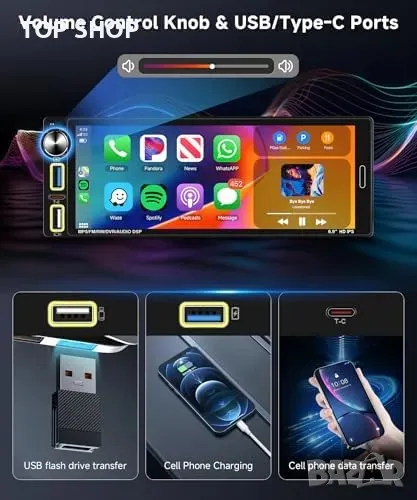 Ново Авто Радио 1DIN 6.9" CarPlay, Android Auto, Камера, BT за кола