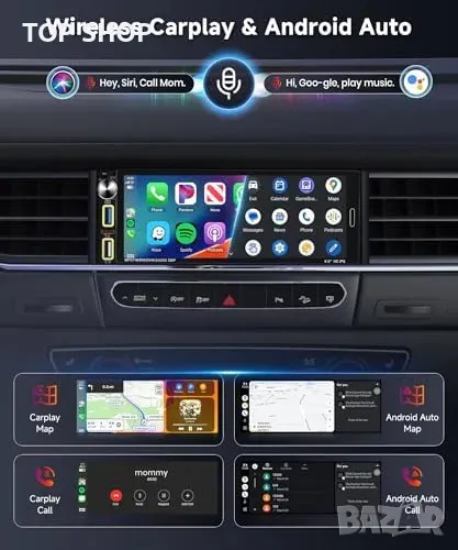 Безжичен CarPlay и Android Auto – Гласово управление чрез Siri/Google Assistant за безопасно шофиране.