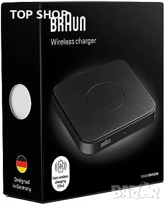 Безжично бързо зареждане: Тази подложка за безжично зареждане на Braun предлага възможности за бързо зареждане, като осигурява до 7,5 W зареждане за устройства с iOS и до 15 W за устройства с Android.