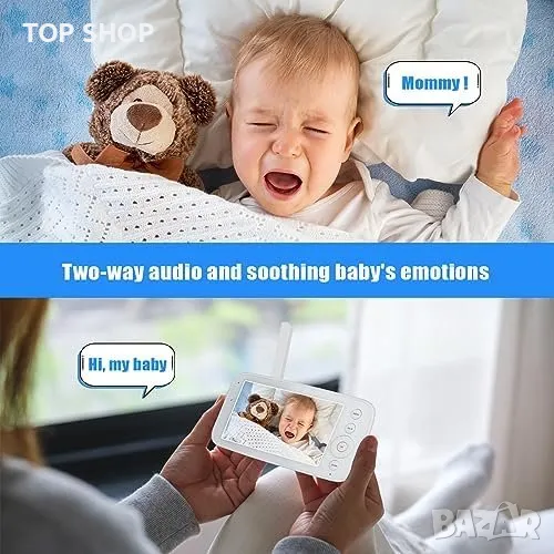 Нов Монитор за Бебе с Панорамна Камера и Двупосочен Звук → Обява 49321304