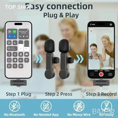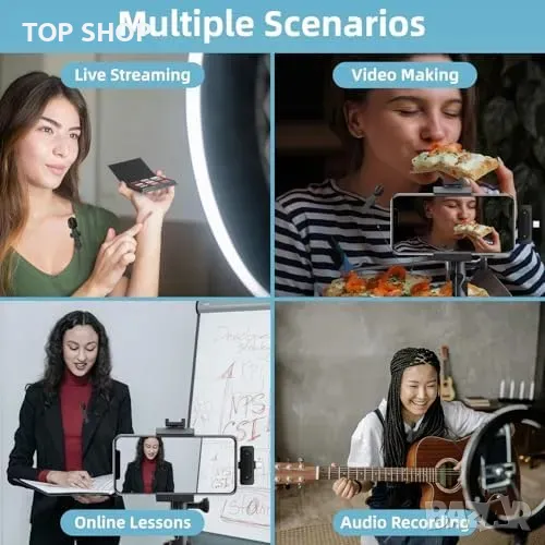 Нов Двоен микрофон за запис и стрийминг - съвместим с iOS и Android → Обява 49321332