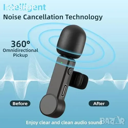 Безжичен мини микрофон с двойна чувствителност и 360° многопосочно приемане
