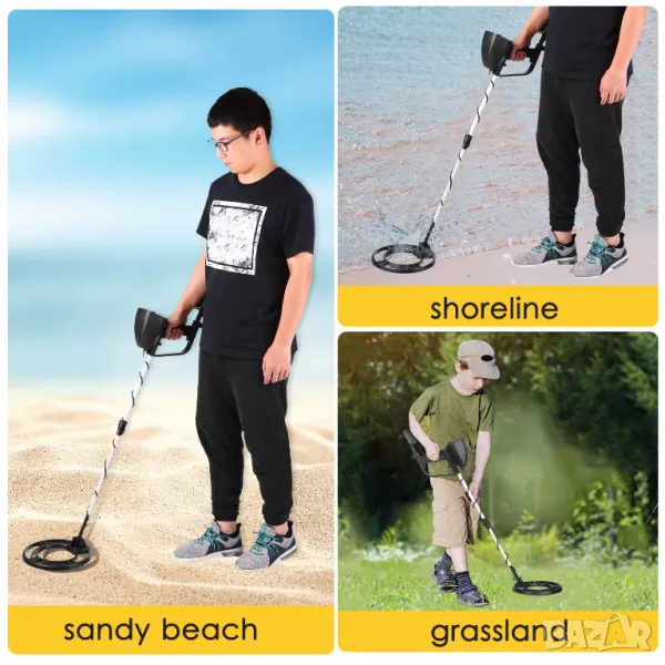 - Предназначен за селективно търсене на черни и цветни метали (вкл. самородно злато), намиращи се в земята на дълбочина до 200см.( големи метални обекти)