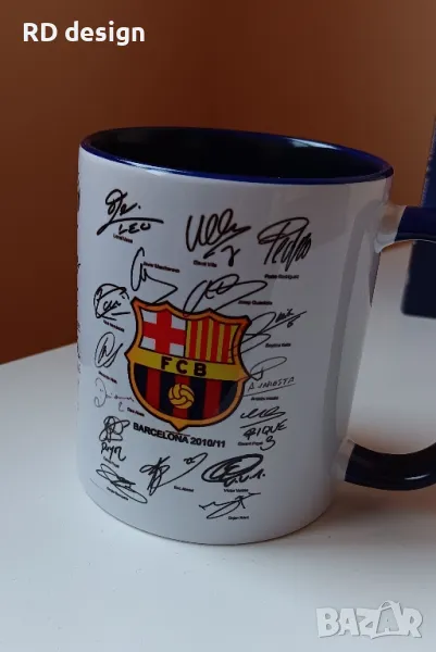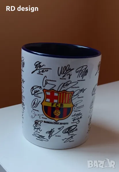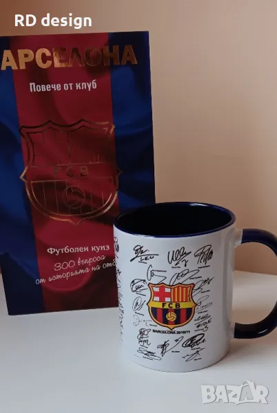 Чаша на Барселона (330ml) с автографи на играчите от шампионския отбор от сезон 2010/2011 + книга с 300 въпроса и отговора, свързани с историята на "Каталунците".