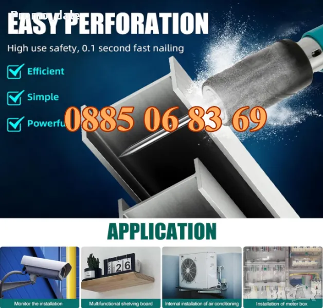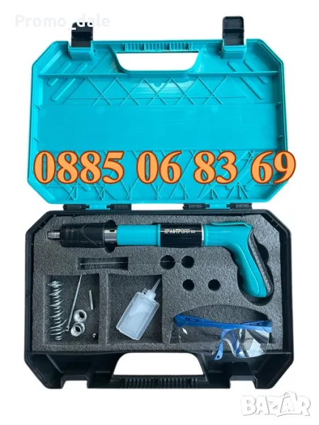 Ръчен пистолет за забиване на пирони в бетон, метал, керамика и др. Лесен за използване, универсален и ефективен инструмент.