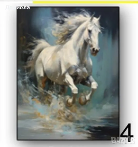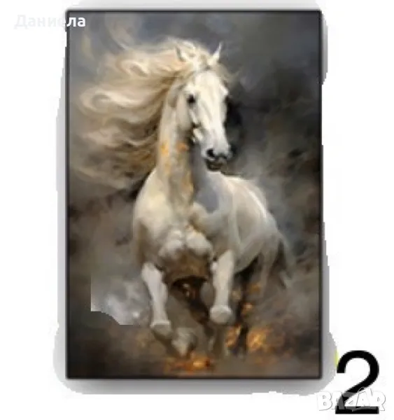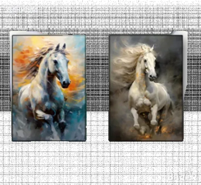 Представяме ви нашата колекция от картини с кон, предлагащи разнообразие от модели, които ще добавят елегантност и стил във вашия дом. Всяка картина е с размери 42х62 см, идеални за декориране на всяка стена в дома ви. Картините изобразяват красиви и динамични изображения на коне, които вдъхновяват и придават усещане за свобода и движение. С висококачествения си печат и детайлност, тези картини са перфектният избор за любителите на конете и изящното изкуство. Независимо дали търсите модерен, класически или абстрактен дизайн, нашата колекция предлага нещо за всеки вкус.