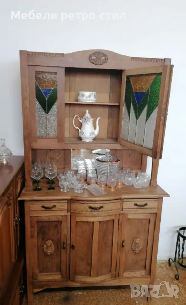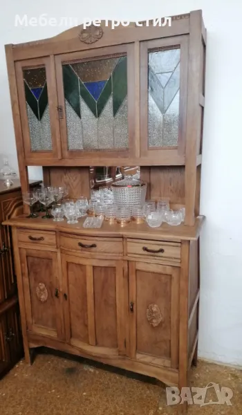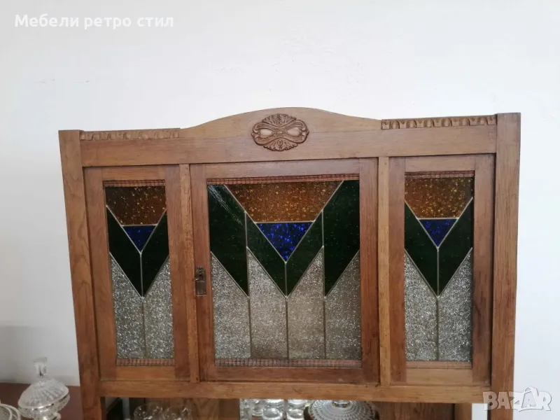 Ретро бюфет с красив старинен витраж. Шкафа е в много добро състояние . → Обява 49324374