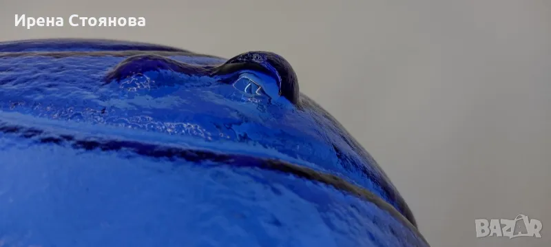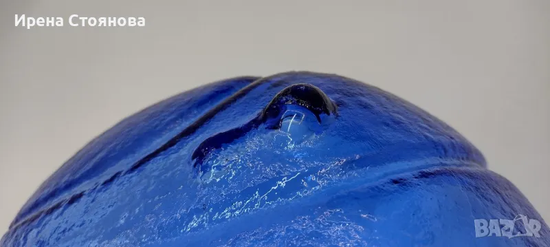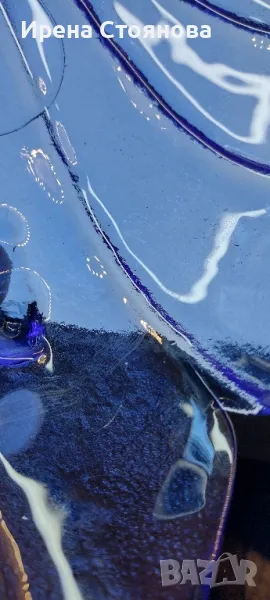 Голяма, стъклена фруктиера във формата на листо с крачета. Височина 9 см, 28/32 см в най-широка част. Минимални следи от употреба/съхранение, малка забележка на едно от крачетата. Цена 32 лв.