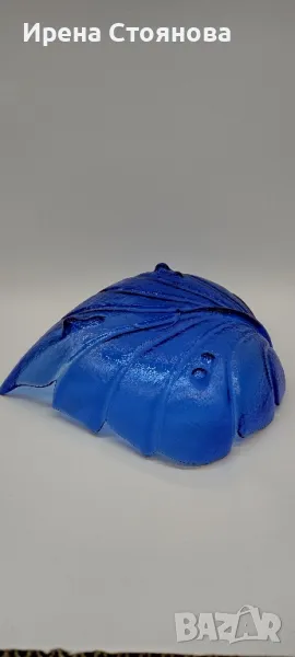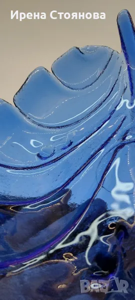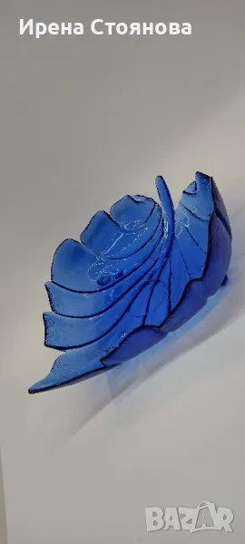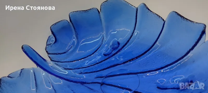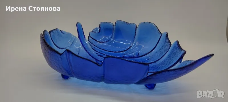 Голяма, стъклена фруктиера във формата на листо с крачета. → Обява 49324653