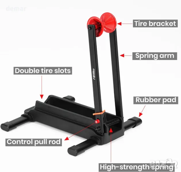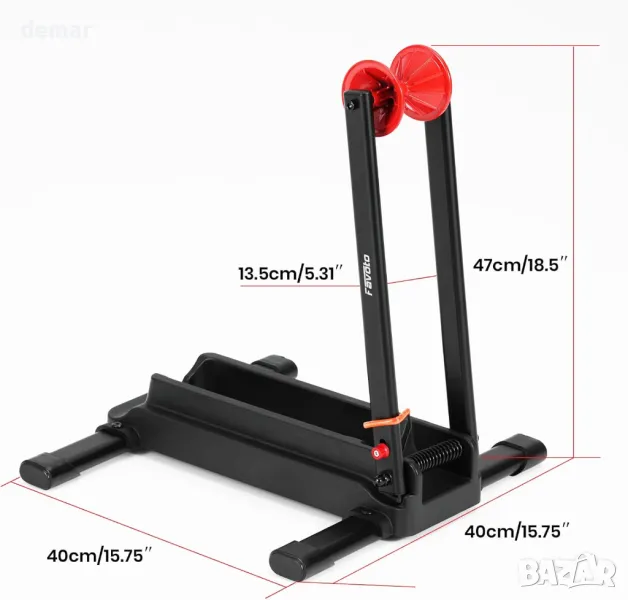 Сгъвама и лесна за използване, тази стойка за велосипеди ви позволява да паркирате велосипеда си, като просто натиснете предното колело на място, без да го повдигате. Проектирана за шосейни и планински велосипеди с 20-29 инчови колела, тя осигурява стабилна опора със здрава рамка от алуминиева сплав и здрави пружини. Покритите ъгли предотвратяват надраскване, а когато не се използва, се сгъва компактно за удобно съхранение. Подходяща както за вътрешна, така и за външна употреба. Размери: 44 x 19 x 15 см; Тегло: 1,5 кг.