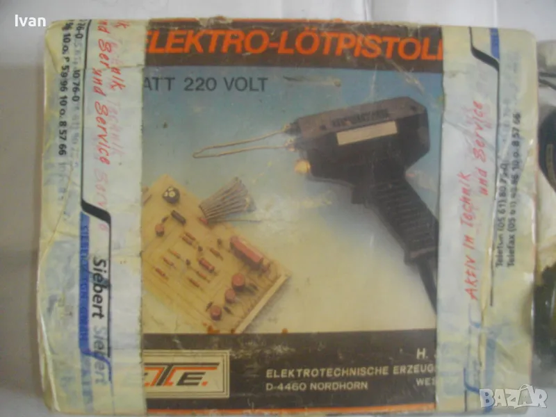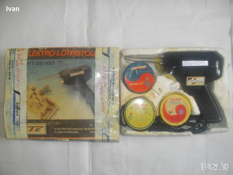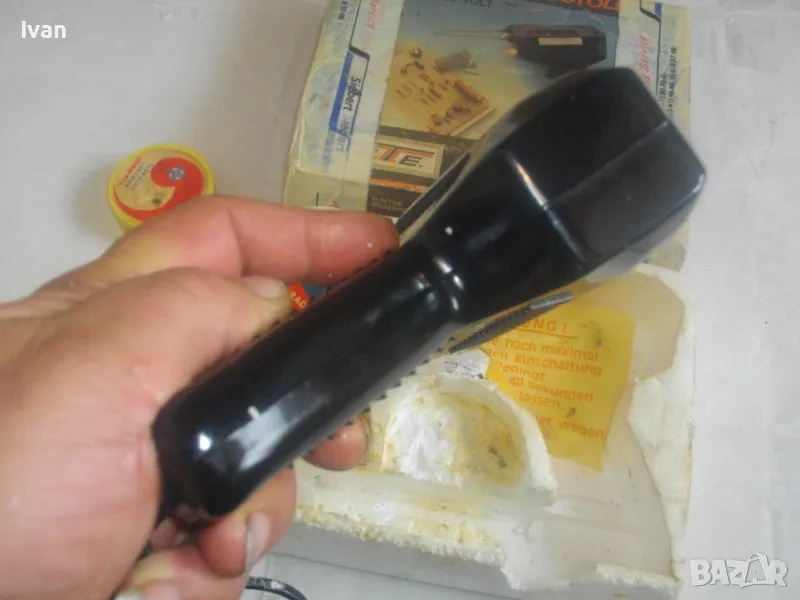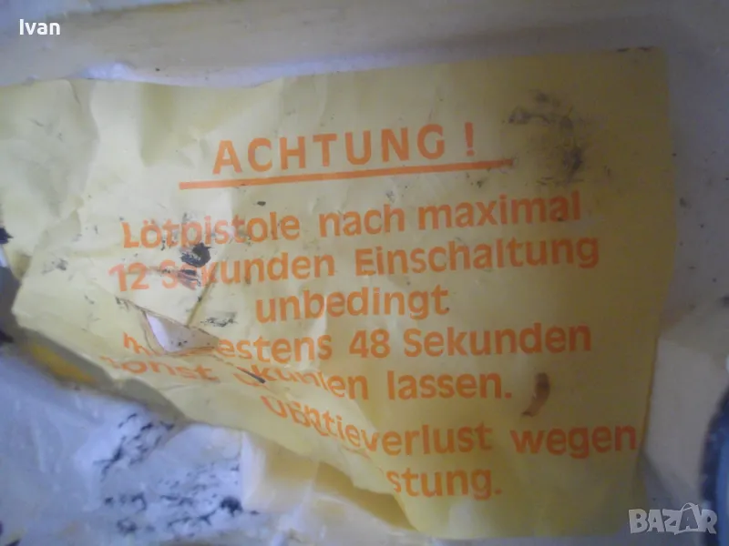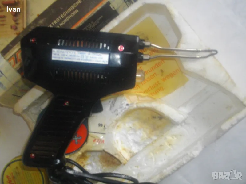 ОПИСАНИЕ на почти нов ел.поялник немски индукционене/трансформаторен профи старо качество Западна Германия - пълен комплект, предлагащ се за части/за ремонт - 99 лв. /НЕ СВЕТВА/. Почти нов, много запазен електрически 100 ватов индукционен поялник, производство Западна Германия /ФРГ/ от преди години. ПОЯЛНИКА СЕ ПРЕДЛАГА ЗА ЧАСТИ ИЛИ ЗА РЕМОНТ - някой да си го оправи. Не тръгва и не светва. Не мога да определя проблема - машината не е тествата от техничеко лице.