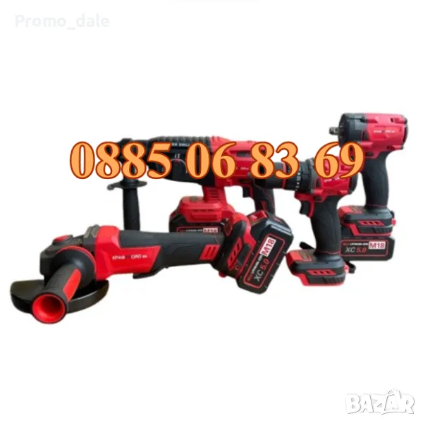 Комплект 4в1 акумулаторен перфоратор, ъглошлайф, гайковерт и винтоверт с 3 батерии 36V 8Ah