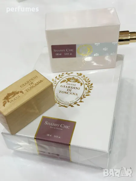 Shabby Chic от Giardini Di Toscana е аромат на цветен дървесен мускус за жени и мъже. Носът зад този аромат е Силвия Мартинели. Връхната нотка е божур; средните нотки са българска роза и бели цветя; базовите нотки са мускус, яванол и кедър.