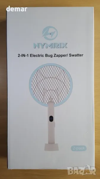Електрическа ракета за мухи и комари Nymrix, 2 в 1 4100V с акумулаторна батерия 1800 mAh, 2 броя