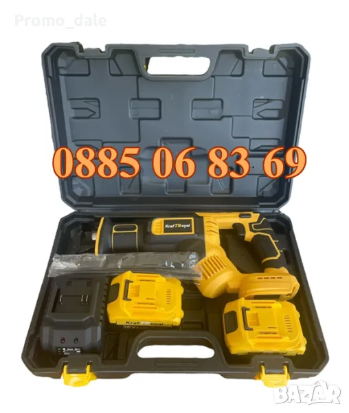 Прав трион на батерия с регулируема скорост и електронна спирачка на двигателя. Мощен и мобилен електроинструмент. Ход с дължина от 28.6 мм дава възможност за максимална дълбочина на рязане 250 мм. Бърза и лесна смяна на режещия нож, поради механизъм SDS ресурс на предпазва акумулатора от претоварване, прегряване и дълбоко заустване. Правият трион е предназначен за рязане на почти всички материали, като дърво, метал, камък. Настройка за скорост на два етапа, за различни материали. Без мемори ефект – батерията може да се зарежда независимо от състоянието на зареждане по всяко време, без да се уврежда клетките.
