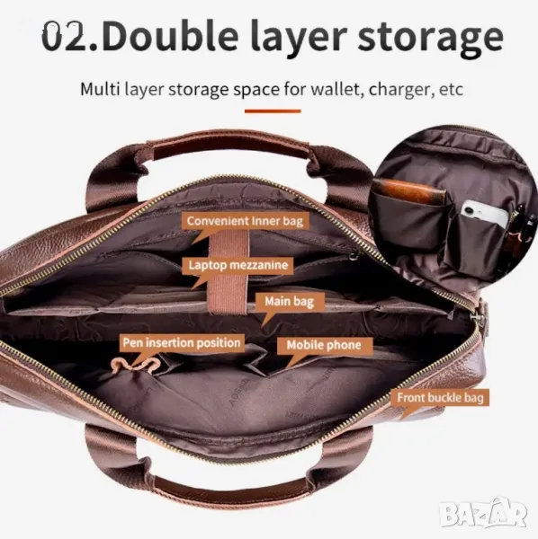 Елегантна, Красива, Модерна и фмпрактична бизнес чанта (куфарче за лаптоп 15”) с две стилни презрамки!!
