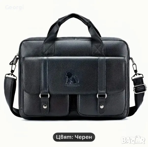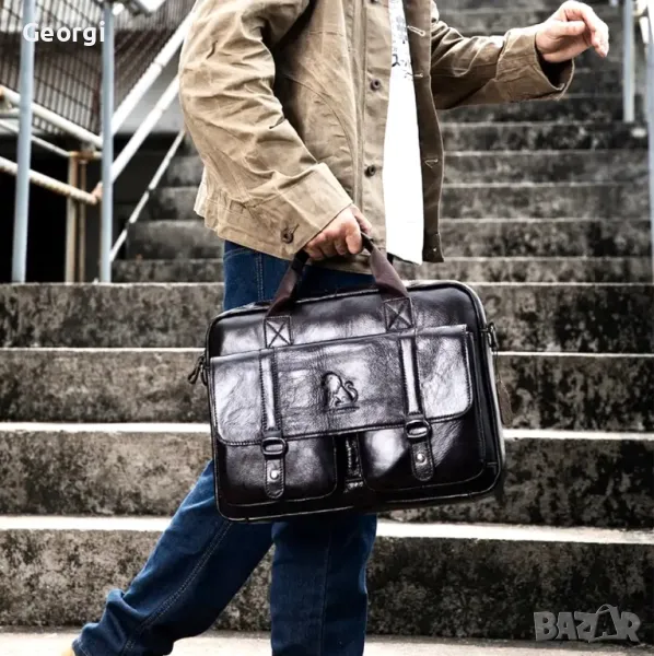 Мъжка професионална и луксозна бизнес чанта (куфарче за лаптоп 15”) Черна естествена кожа!