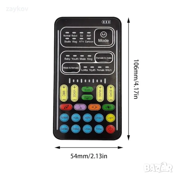 16 различни промени на звука: с 16 различни типа промени на звука, а именно мъжки към женски, женски към мъжки, нормален, лолита, дете, младеж, крал, вещица. Можете също да използвате копчето за фина настройка, за да регулирате всеки звук за няколко различни звука. Перфектен за чат с приятели и забавление, промяна на гласа ви за онлайн игри и т.н.