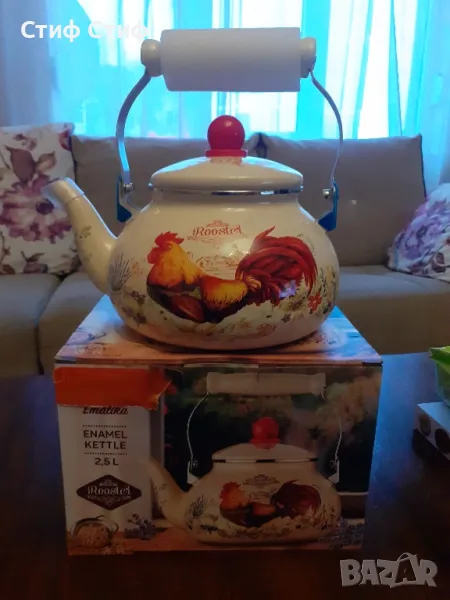 Емайлиран Чайник, снимка 1 - Съдове за готвене - 49327046 Емайлиран Чайник, снимка 2 - Съдове за готвене - 49327046 1/2