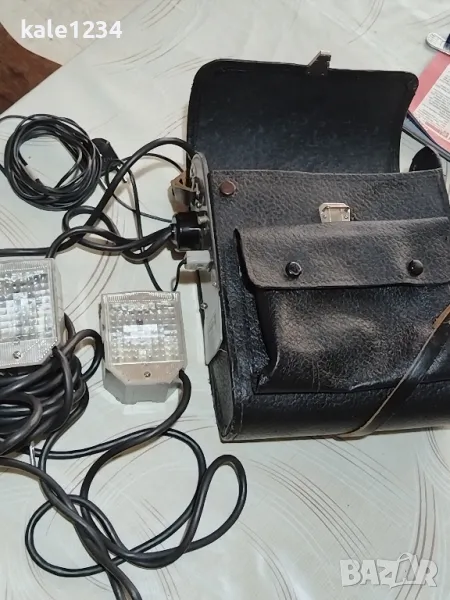 Фотосветкавица Луч 70. СССР. Преносими две светкавици и батерия с чанта от естествена кожа. Пълен комплект, като нови, само са съхранявани. Колекционерски модел! Цена 50лв. Разгледайте снимките! Изпращам с опция преглед и тест.