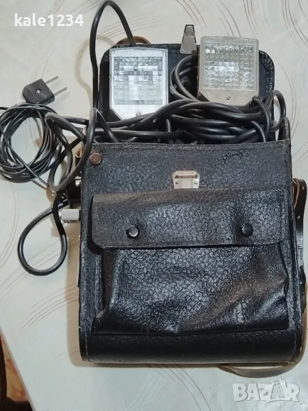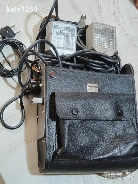 Луч 70. СССР. Фотосветкавица. Luch 70. Чанта от естествена кожа. Комплект. Преносима с батерия → Обява 49327176