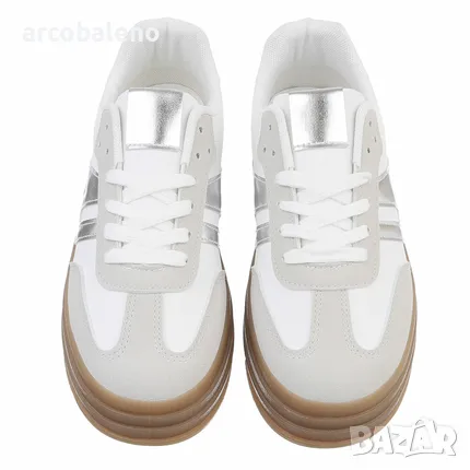 Тези модни дамски маратонки впечатляват с удобна кройка и леко усещане. Здравата и гъвкава подметка осигурява удобно омекотяване при всяка стъпка. Подплатената част и меката стелка осигуряват допълнителен комфорт, дори при продължително носене. Класическата връзка позволява индивидуално регулиране към крака и осигурява оптимално задържане. Перфектен за ежедневно носене, дейности в свободното време или като модерен акцент във всяко облекло. Благодарение на модерния дизайн, тези маратонки могат да се комбинират по различни начини – от спортно до небрежно елегантно.
