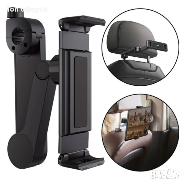 Закрепва се на облегалка за глава на кола посредством затягащ винт.