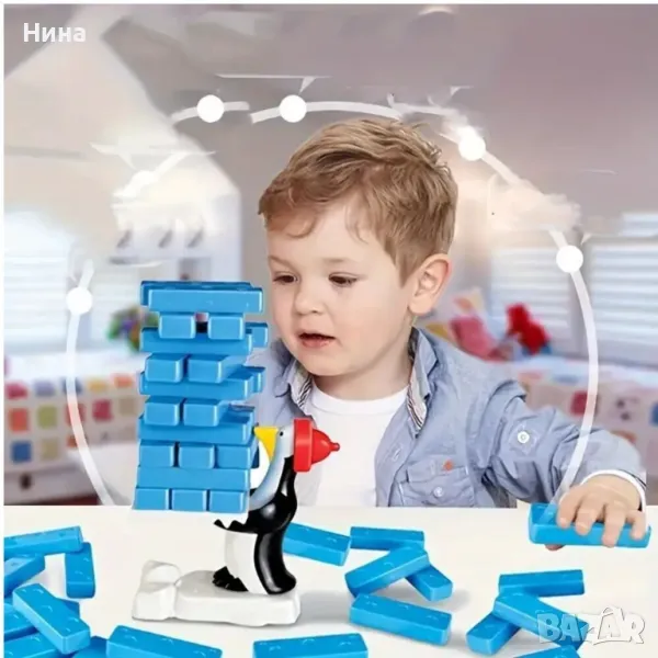 Kingso представят един забавен прочит на любима детска игра Дженга. Комплектът е съставен от фигурка на пингвинче, което стои върху парче лед, ледени кубчета и поднос. Децата трябва да поставят подноса в ръцете на пингвина и да започнат да редят кула нагоре. Печели този, който успее да нареди повече кубчета. Може също така да подредят всички кубчета върху ръцете на пингвина и да започнат да ги махат едно по едно. Печели този, който успее да не разруши кулата. Всички елементи са изработени от висококачествена пластмаса.