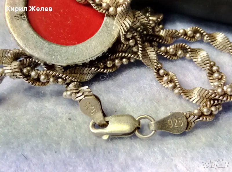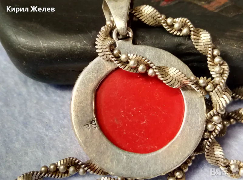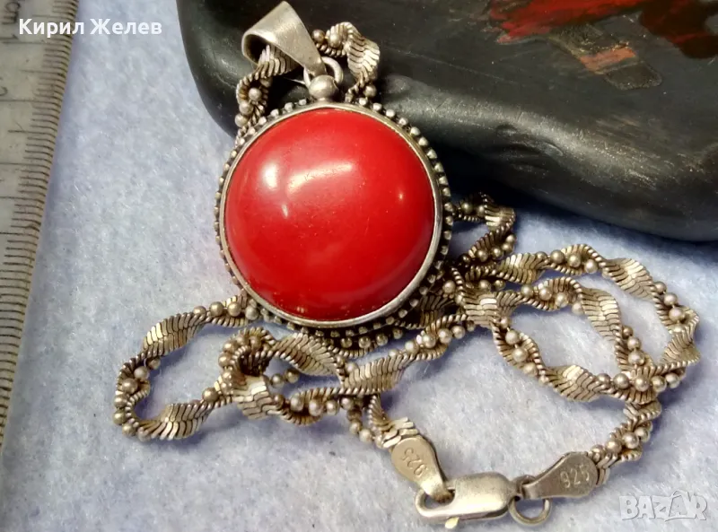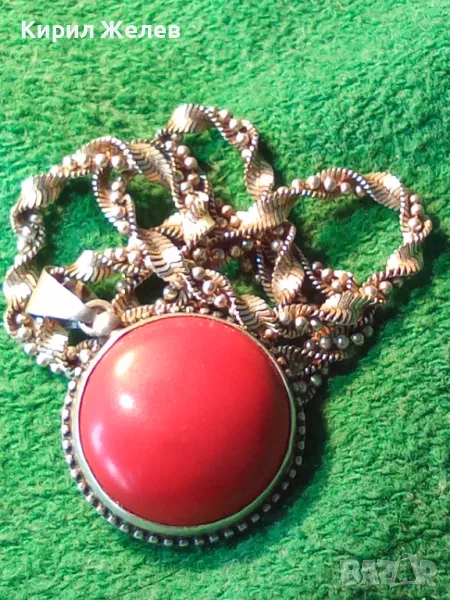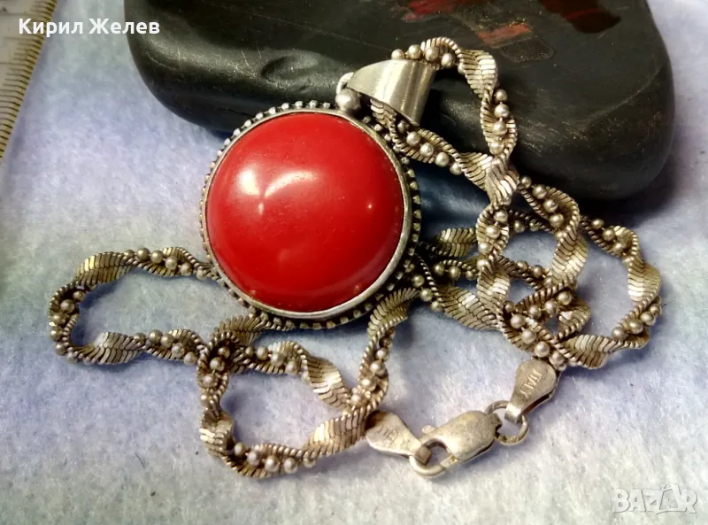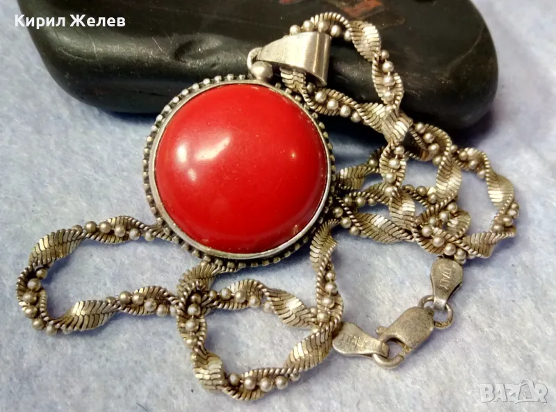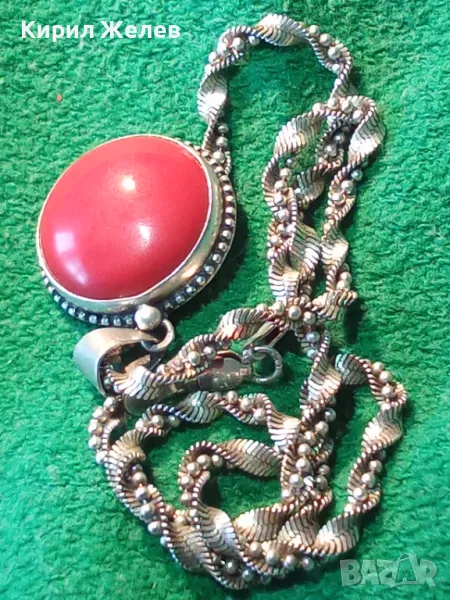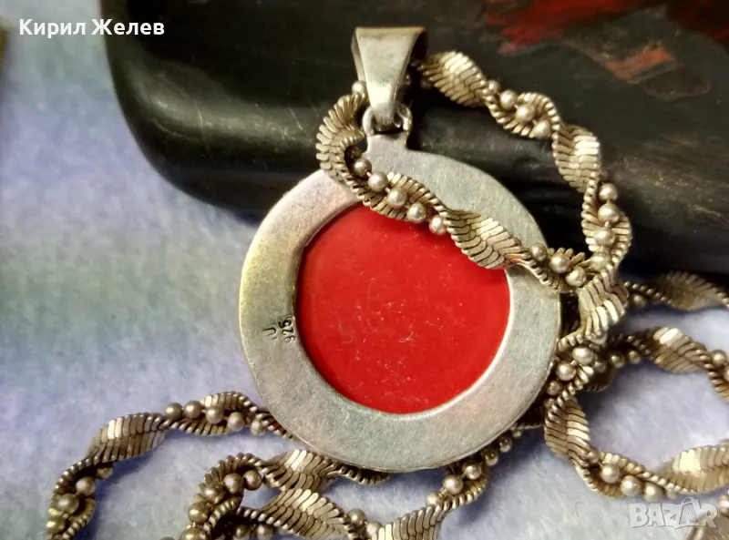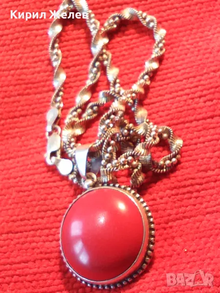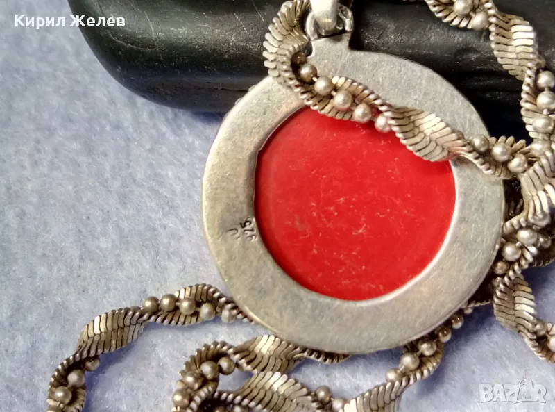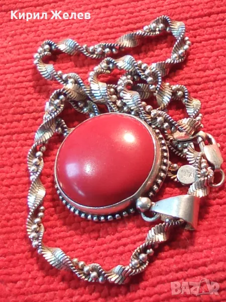 МАРКОВО СРЕБЪРНО КОЛИЕ с СРЕБЪРЕН МЕДАЛЬОН СРЕБРО 925 ITALY с ЮВЕЛИРНО ШЛИФОВАН ЧЕРВЕН КОРАЛ 34928