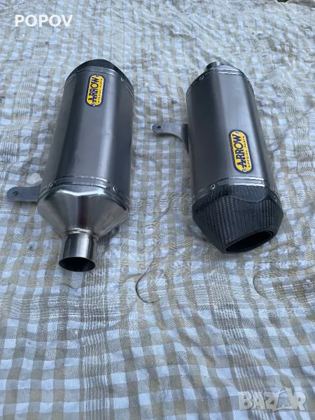 Ауспуси Arrow ляв и десен единия с лека забележка(ляв), без заглушители са и двата. Цената е за комплект може и по единично. Само лично предаване, цената не се коментира.