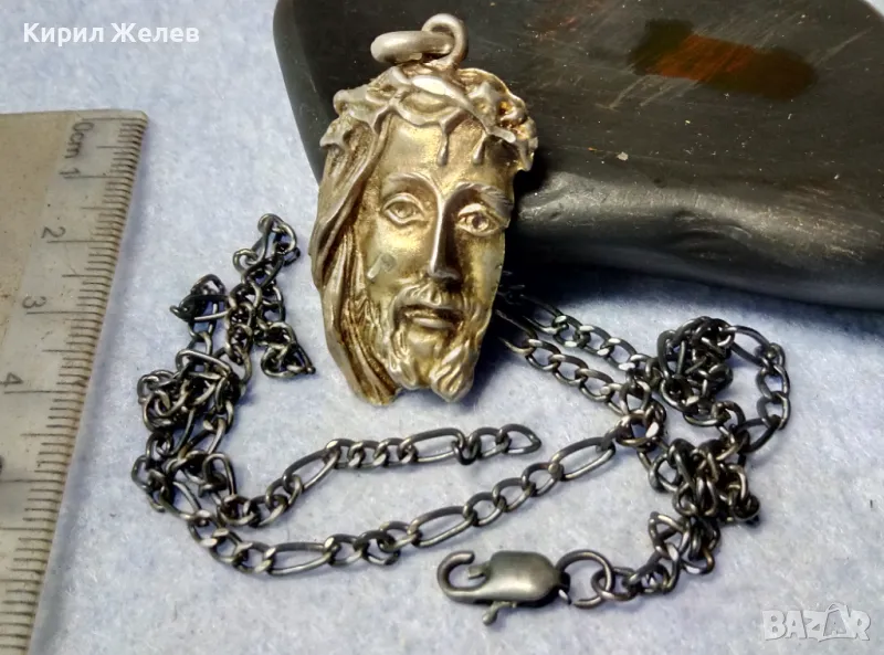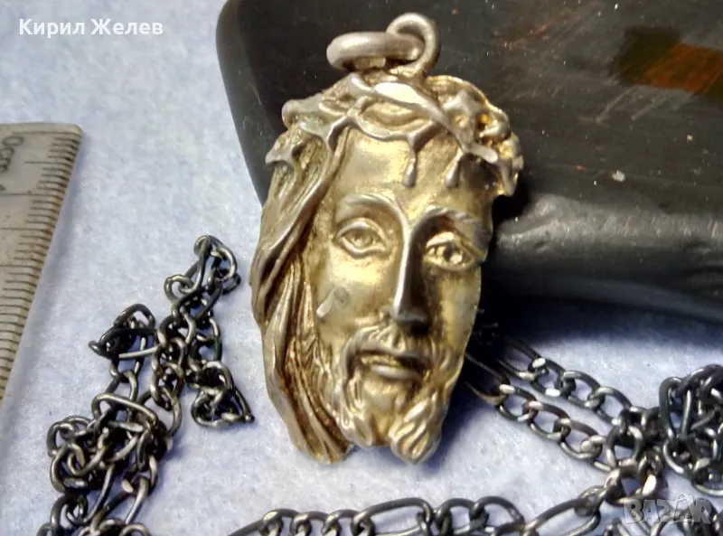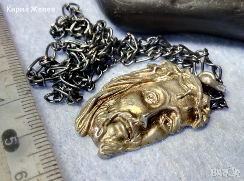 БАРЕЛЕФЕН СРЕБЪРЕН МЕДАЛЬОН с ЛИКА на ИИСУС ХРИСТОС с СРЕБЪРНА ВЕРИЖКА ОКСИДИРАНО СРЕБРО 925 - 40587