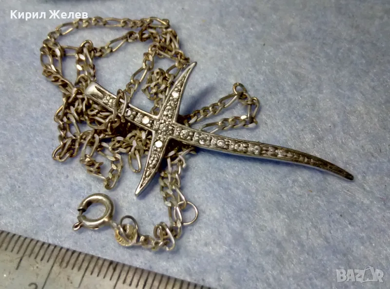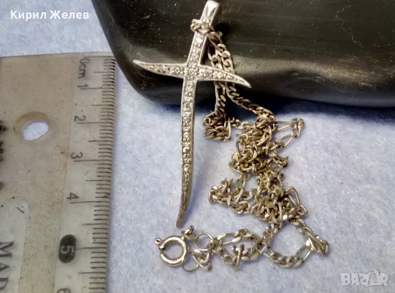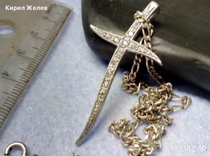 СКЪПОЦЕНЕН СРЕБЪРЕН КРЪСТ РОДИРАНО СРЕБРО 925 с БЛЕСТЯЩИ ЦИРКОНИ и СРЕБЪРНА ВЕРИЖКА СРЕБРО 925 30605