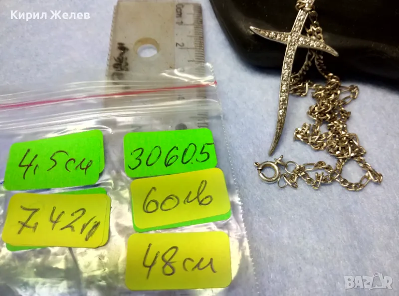 Пускам голяма СЕРИЯ от майсторска ръчна изработка старинни и нови СРЕБЪРНИ БИЖУТА - пръстени, обеци, медальони, гривни, ланци, колиета, брошки - някои са инкрустирани със скъпоценни или полускъпоценни камъни. Всичките са ТЕСТВАНИ ПРОФЕСИОНАЛНО върху лидийски камък с пробер - киселина за сребро, като особено по-старите, ръчно изработени и без маркировка които са, е заснето и резултата на камъка - яркочервеният цвят при натъркване и капване на киселината показва, че са от масивно СРЕБРО ВИСОКА ПРОБА. Има и накити от САЧАН /нископробна сребърна сплав, с която са работели старите майстори - куюмджии от периода на ВЪЗРАЖДАНЕТО и края на 19-ти век/, мед, бронз и благородна стомана с позлата или посребряване. Снимките ги ОНАГЛЕДЯВАТ! Имам НАД 27000 обяви в профила си - За ВСЕКИ по НЕЩО...! Изпращам по Еконт или Спиди с опция Преглед/Тест и отстъпка-транспорт.