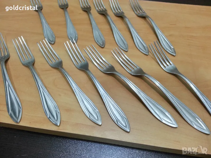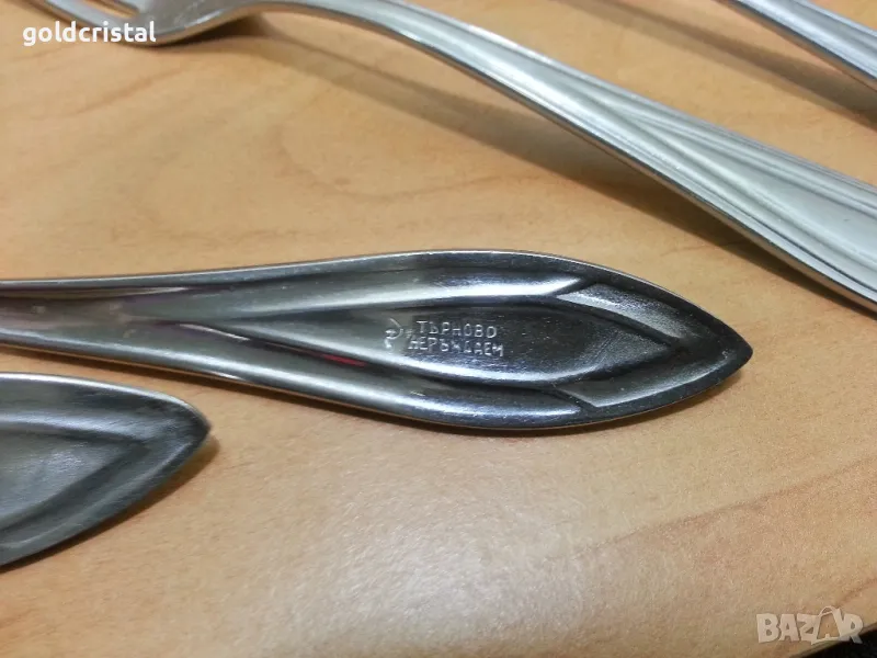 стари български прибори за хранене вилици или лъжици Велико Търново сърп и чук неръждаеми 6 бр -45лв сервиз комплект сет лот ретро арт декор винтидж колекция стари старинни антикварни предмети обзавеждане за дома и семейството подходящи за подарък за ценители и колекционери
