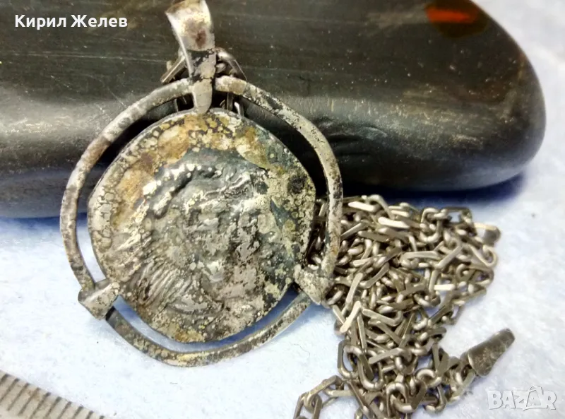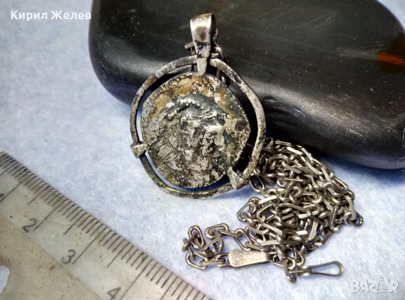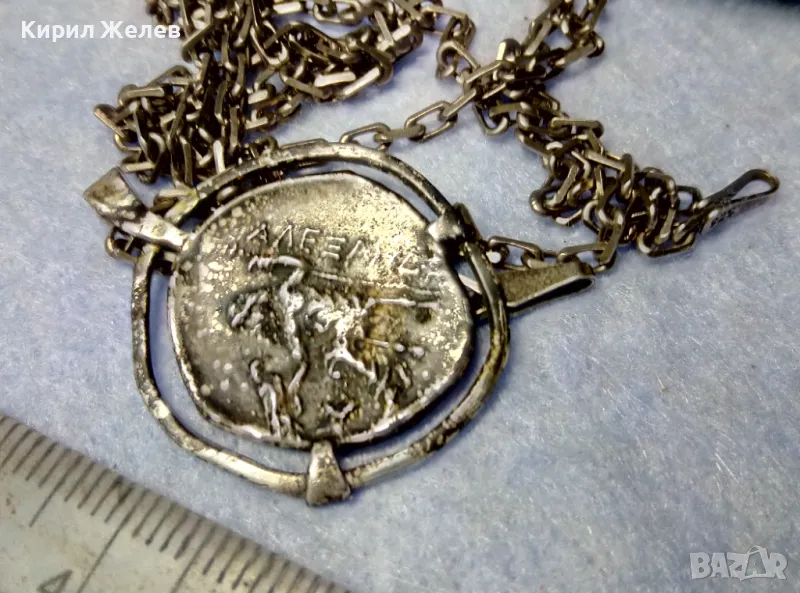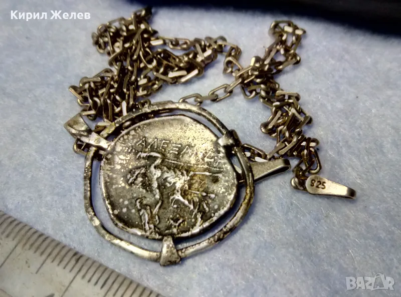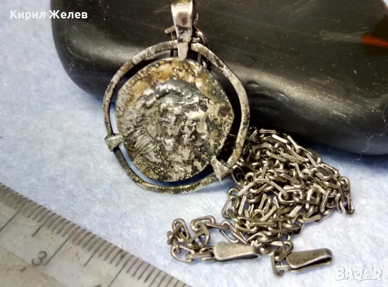 СРЕБЪРЕН МЕДАЛЬОН АРТ РЕПЛИКА КОПИЕ на ДРЕВНА МОНЕНА с СРЕБЪРНА ВЕРИЖКА ОКСИДИРАНО СРЕБРО 925 47522