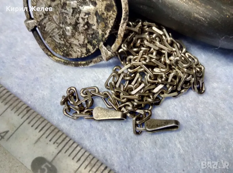 СЪВРЕМЕННА МАЙСТОРСКА ХУДОЖЕСТВЕНА БИЖУТЕРСКА РЪЧНА ИЗРАБОТКА със СТИЛЕН СРЕБЪРЕН ОБКОВ и ИЗКУСТВЕНО СЪСТАРЯВАНЕ / ПАТИНИРАНЕ на МАТЕРИАЛА - СРЕБРО ВИСОКА ПРОБА. НАЛИЧЕН ЩЕМПЕЛ с ИНИЦИАЛИТЕ на МАЙСТОРА! ВЕРИЖКАТА се НУЖДАЕ от ЗАКОПЧАЛКА! / Пускам голяма СЕРИЯ от майсторска ръчна изработка старинни и нови СРЕБЪРНИ БИЖУТА - пръстени, обеци, медальони, гривни, ланци, колиета, брошки - някои са инкрустирани със скъпоценни или полускъпоценни камъни. Всичките са ТЕСТВАНИ ПРОФЕСИОНАЛНО върху лидийски камък с пробер - киселина за сребро, като особено по-старите, ръчно изработени и без маркировка които са, е заснето и резултата на камъка - яркочервеният цвят при натъркване и капване на киселината показва, че са от масивно СРЕБРО ВИСОКА ПРОБА. Има и накити от САЧАН /нископробна сребърна сплав, с която са работели старите майстори - куюмджии от периода на ВЪЗРАЖДАНЕТО и края на 19-ти век/, мед, бронз и благородна стомана с позлата или посребряване. Снимките ги ОНАГЛЕДЯВАТ! Имам НАД 27000 обяви в профила си - За ВСЕКИ по НЕЩО...! Изпращам по Еконт или Спиди с опция Преглед/Тест и отстъпка-транспорт.