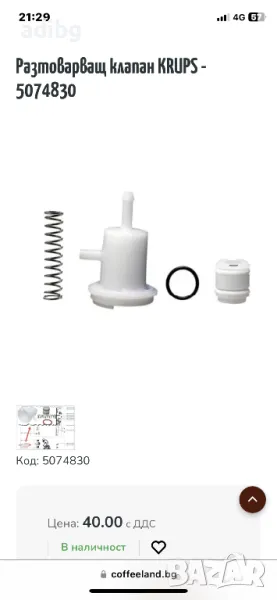 Krups - Разтоварващ дренажен клапан → Обява 49329058