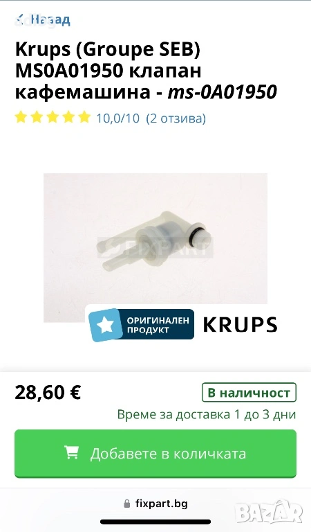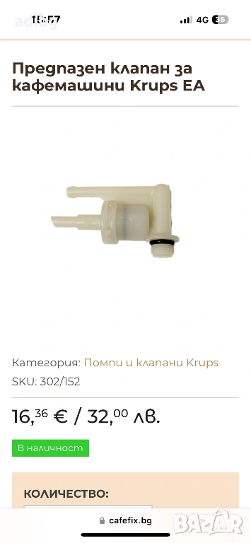 Krups - Клапан Свръх налягане Клапан Помпа байпасен, снимка 1 - Кафемашини - 49329571 Krups - Клапан Свръх налягане Клапан Помпа байпасен, снимка 2 - Кафемашини - 49329571 Krups - Клапан Свръх налягане Клапан Помпа байпасен, снимка 3 - Кафемашини - 49329571 Krups - Клапан Свръх налягане Клапан Помпа байпасен, снимка 4 - Кафемашини - 49329571 Krups - Клапан Свръх налягане Клапан Помпа байпасен, снимка 5 - Кафемашини - 49329571 Krups - Клапан Свръх налягане Клапан Помпа байпасен, снимка 6 - Кафемашини - 49329571 1/6