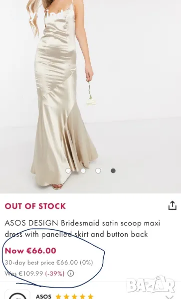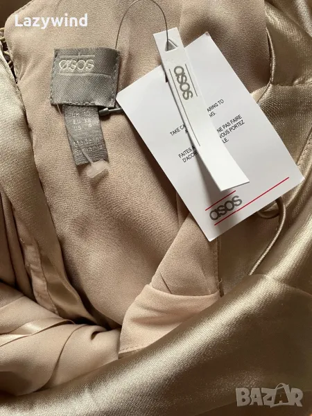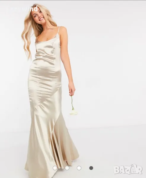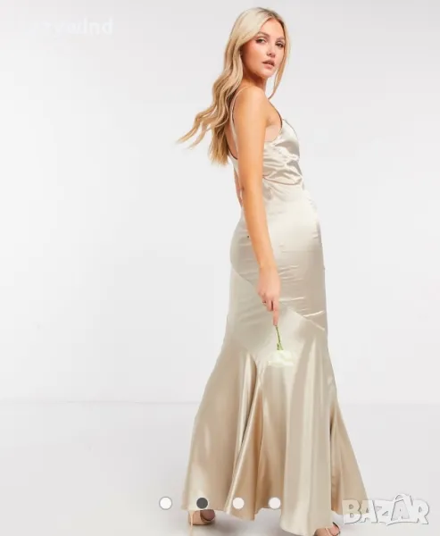 Официална рокля с дължина до земята ASOS Design, нова, с етикети, сатенена, няма еластичност, води се bridesmaid - за шаферка, но реално е елегантна и изискана за всякакъв специален повод, размер 38, с копчета на гърба, пада много красиво, с подплата, материята не прозира!